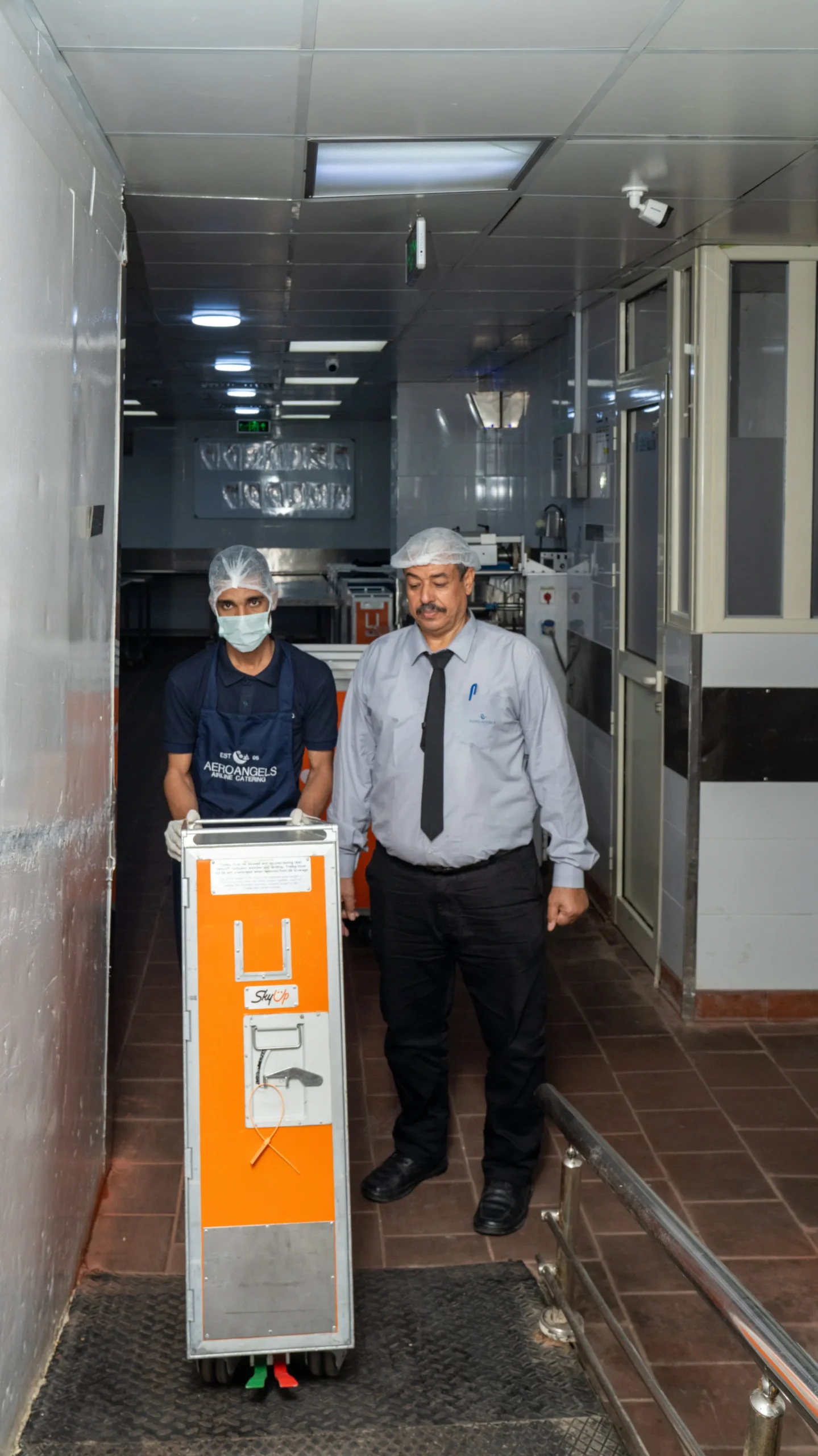 A secure chain of custody is maintained from the kitchen to the aircraft to ensure the integrity of the food.